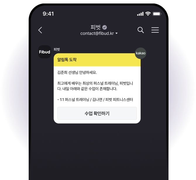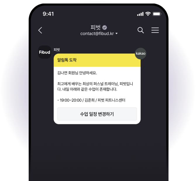 수업 하루 전 회원님께 자동으로 발송되는 알림톡으로 전문가님의 소중한 시간과 에너지를 아껴보세요.