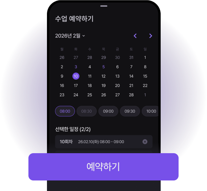 빈 시간에 회원이 직접 예약을 신청하도록 설정해 보세요. 일정 등록은 물론 노쇼 처리도 자동화 됩니다.